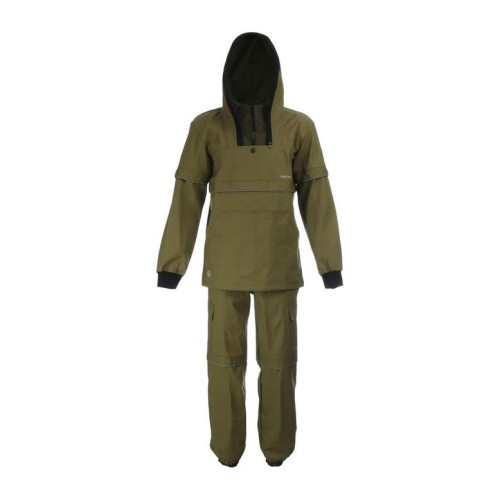 Комплект одежды Антигнус-Люкс для экспедиций, охоты, рыбалки, сборки грибов, работы на даче. Материал: палатка, 100% х/б. Эта ткань отличается высокой стойкостью к долговременному использованию в условиях дикой природы, а также обеспечивает защиту от насекомых и влаги. Комплект включает в себя верхнюю куртку и брюки. Куртка оснащена вентиляционным капюшоном и специальной сеткой, предотвращающей проникновение насекомых, которая может быть спрятана в секретный карман на груди. Дополнительно костюм оснащен защитными кольцами, предназначенными для предотвращения проникновения клещей, а также защитными "юбками" на брюках, которые не дают насекомым добраться до кожи.