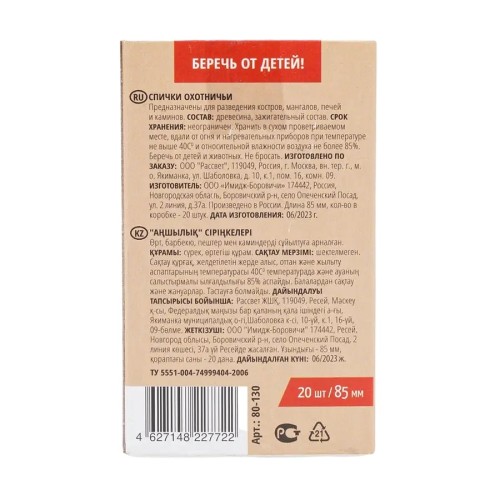 Спички ROYALGRILL "Охотничьи" 85мм/20шт