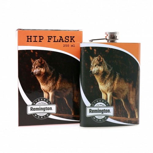 Фляжка является поистине одним из самых легендарных сосудов в человеческой истории. Проходя через множественные исторические события и видоизменения, основная задача фляги осталась неизменна — хранение питьевой жидкости для последующего употребления по мере необходимости. Как правило, современные фляги изготавливают из нержавеющей стали с навинчивающейся пробкой для предотвращения случайного выплеска содержимого наружу. Некоторые модели даже оснащены пробкой с ниппелем что позволяет пить из фляги не открывая пробки. Данную модель фляжки изготовила и представил бренд «Remington». Этот производитель славится своим широким ассортиментом товаров разных диапазонов. Перед тем, как попасть на полки магазинов, каждый товар проходит обязательный контроль качества. Дизайн фляжки очень необычен — вместо узнаваемого серебристого корпуса на модели 'Remington Wolf' нанесено изображение волка с логотипом производителя. Благодаря яркому дизайну, фляжку 'Remington Wolf' можно купить в подарок для любителей активного отдыха. Фляжка имеет оптимальный размер, и легко поместиться в кармане походной одежды. Крышка оснащена специальным металлическим язычком, за который фляжку можно прикрепить к элементам экипировки. Модель предназначена для хранения любых видов напитков. Объем фляжки 250 мл.