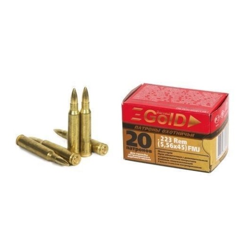 Патрон нарезной БПЗ калибр 5,56х45 FMJ Barnaul Gold лат. пуля и гильза 3,56гр.(в пач 20 шт)(в кор 500)