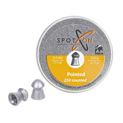 Пуля пневм. SPOTON Pointed 4,5 мм, 0,63 гр. (250 шт) – это упаковка снарядов для стрельбы из пневматических винтовок.