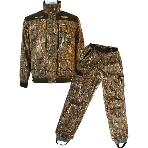 Изготовлен из специальной ткани с содержанием хлопка (65%пэ и 35% хб) с тефлоновой пропиткой и поверхностью с пич эффектом. В качестве защитных элементов применяется дышащая износостойкая непромокаемая ткань с полиуретановым покрытием. Инновационные камуфлированные рисунки идеально маскируют охотника в любой местности.