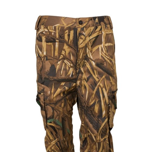 Специальный, не стесняющий движений костюм для охоты. Куртка средней длины с поясом на резинке. Центральная молния закрыта ветрозащитной планкой. Капюшон отстегивается и регулируется по объему. Воротник — стойка. Рукава на манжетах. Уплотнители на плечах предотвращают соскальзывание ружья. 9 внешних карманов разных форм и объемов на молниях. Брюки с поясом на резинке со шлефками под ремень. 6 карманов, в том числе под нож. Все основные узлы костюма обработаны двойной строчкой для большей прочности при использовании.